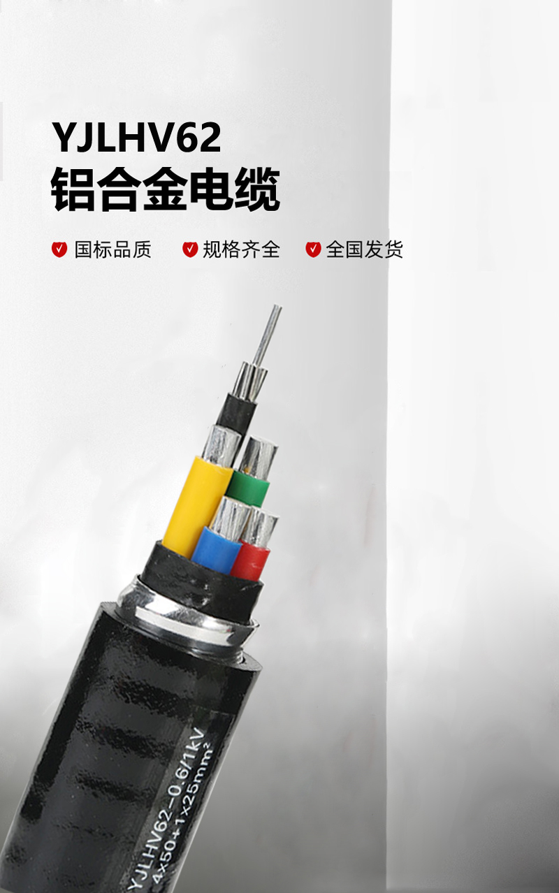YJLHV62鋁合金電纜是以鋁合金材料為導(dǎo)體,采用特殊緊壓工藝和退火處理等先進(jìn)技術(shù)發(fā)明創(chuàng)造的新型材料電力電纜。